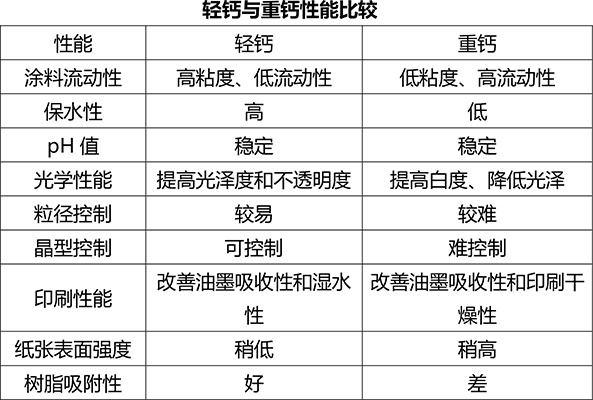 重鈣和輕鈣在造紙中的性能是不一樣的,具體可以看下圖;